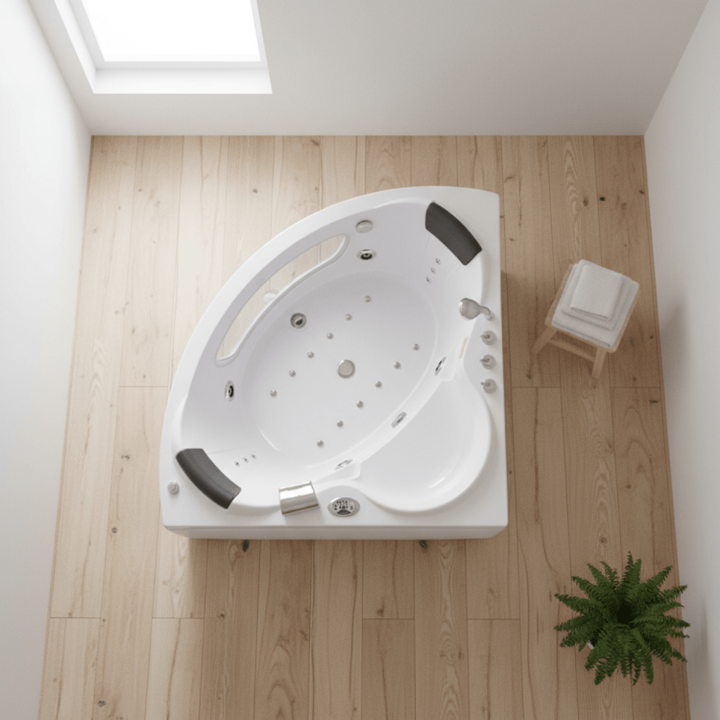 Het Singapore Wit ABS Hoek Massagebad brengt exclusieve wellness naar je eigen badkamer. Dankzij de ronde hoekvorm is dit bad niet alleen een ruimtebesparende oplossing, maar ook een echte blikvanger. Voorzien van meerdere krachtige water- en luchtjets die zorgen voor een weldadige hydromassage. Met twee comfortabele hoofdsteunen, een modern bedieningspaneel en een hoogwaardige afwerking biedt dit bad ultiem comfort. Het duurzame ABS-materiaal houdt warmte vast, is onderhoudsvriendelijk en gaat jarenlang mee.